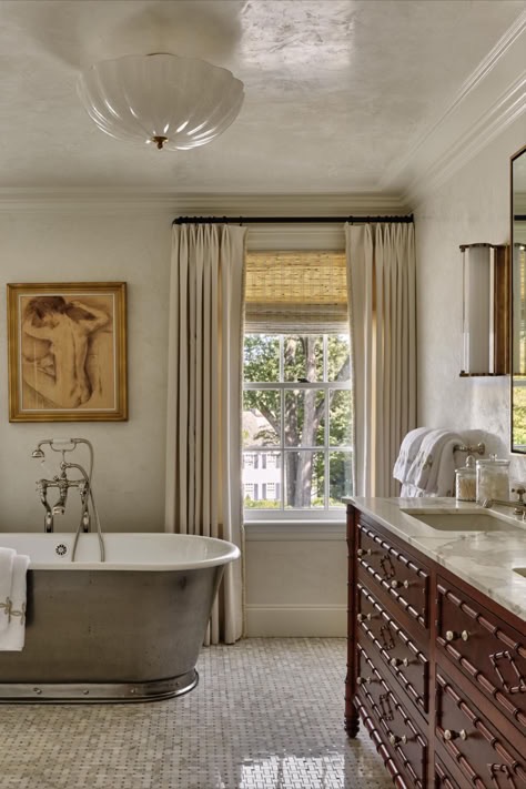 Don’t forget to look up. Whether it’s a subtle beadboard, paneled wood, or a bold painted ceiling, we’re seeing clients embrace the “fifth wall” more than ever. Adding texture, wallpaper or color overhead draws the eye up and makes a room feel intentional from every angle.