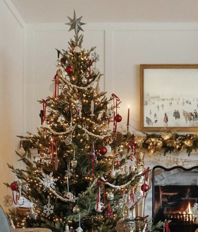We’re all about a nostalgic Christmas tree; with ornaments made by the kids over the years, and the ones from vacations and white elephant parties. I plan to favor memory holding pieces, the joy of imperfect, even a little clutter-filled decor; displaying the painted mugs and Santa plates for a little extra whimsy.